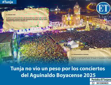 Tras una investigación liderada por el Periódico El Tunjano ante la ausencia de reportes públicos sobre las finanzas de la festividad, se logró establecer que la ciudad no recibió ingresos en efectivo por concepto de boletería. Aunque la comercialización de palcos y entradas VIP durante la versión 70 del Aguinaldo Boyacense generó más de 1.550 millones de pesos, la Alcaldía de Tunja confirmó que estos recursos nunca llegaron a la tesorería. Por el contrario, se manejaron íntegramente bajo una figura de contraprestación en especie que en la práctica sirvió para financiar los costos más altos del mismo evento.