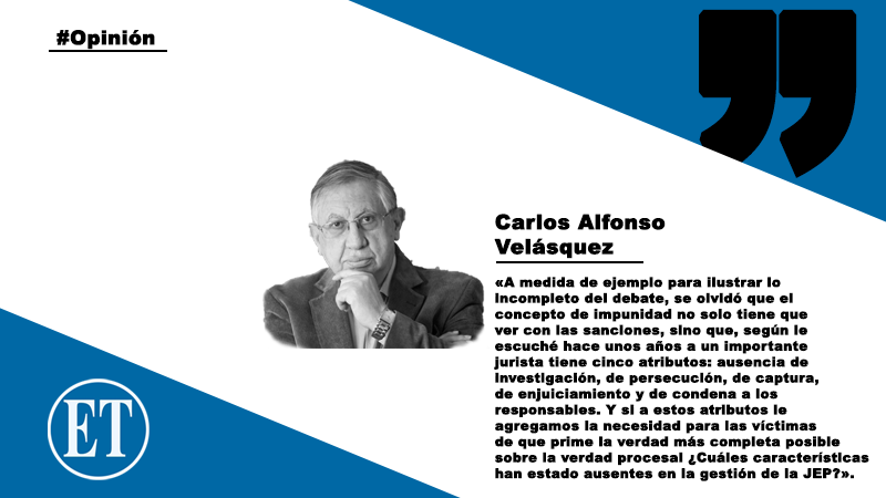 A raíz de las recientes decisiones de la JEP, el debate público ha girado alrededor, de la demora del tribunal para emitir las primeras sentencias o al excesivo costo de una jurisdicción que, a juicio de sus detractores, además se tornó espuria desde el “triunfo” del no en el plebiscito. Aún más, el término impunidad es el que más ha estado en boca de muchos políticos, dada la desproporción de las sanciones frente a la gravedad de los delitos. Pero en esto último, y a medida de ejemplo para ilustrar lo incompleto del debate, se olvidó que el concepto de impunidad no solo tiene que ver con las sanciones, sino que, según le escuché hace unos años a un importante jurista tiene cinco atributos: ausencia de investigación, de persecución, de captura, de enjuiciamiento y de condena a los responsables. Y si a estos atributos le agregamos la necesidad para las víctimas de que prime la verdad más completa posible sobre la verdad procesal ¿Cuáles características han estado ausentes en la gestión de la JEP?