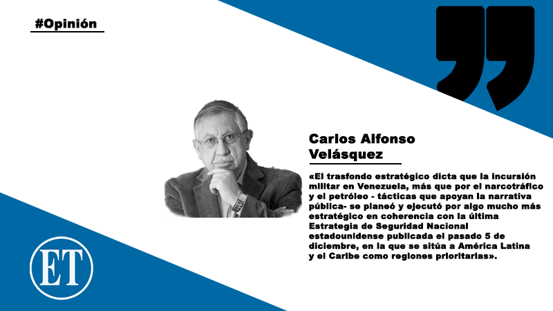 El trasfondo estratégico dicta que la incursión militar en Venezuela, más que por el narcotráfico y el petróleo - tácticas que apoyan la narrativa pública- se planeó y ejecutó por algo mucho más estratégico en coherencia con la última Estrategia de Seguridad Nacional estadounidense publicada el pasado 5 de diciembre, en la que se sitúa a América Latina y el Caribe como regiones prioritarias. Es que el Consejo de Seguridad Nacional (NSC siglas en inglés) que incluye a las cabezas del Pentágono y la CIA y asesora directamente al presidente, calificó en los últimos años al régimen de Maduro como una amenaza seria a la seguridad nacional de EE. UU. debido a que cruzó lo que en el NSC se consideró el umbral de riesgo tolerable.