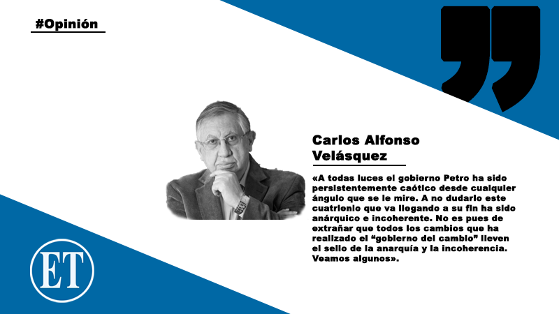A todas luces el gobierno Petro ha sido persistentemente caótico desde cualquier ángulo que se le mire. A no dudarlo este cuatrienio que va llegando a su fin ha sido anárquico e incoherente. No es pues de extrañar que todos los cambios que ha realizado el “gobierno del cambio” lleven el sello de la anarquía y la incoherencia. Veamos algunos.