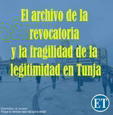 El archivo de la revocatoria no prueba fortaleza democrática, sino la fragilidad de la legitimidad en la que se sostiene el actual gobierno municipal. En Tunja, más que un triunfo de la institucionalidad, lo que se evidencia es la dificultad de la ciudadanía para ejercer sus derechos frente a un poder que no duda en limitar los espacios de participación que, paradójicamente, dice respetar.