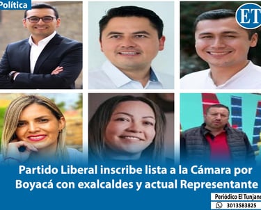 El Partido Liberal formalizó su lista de candidatos a la Cámara de Representantes por Boyacá para los comicios de 2026. La plancha está conformada por dos mujeres y cuatro hombres provenientes de distintas regiones del departamento.