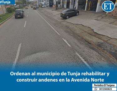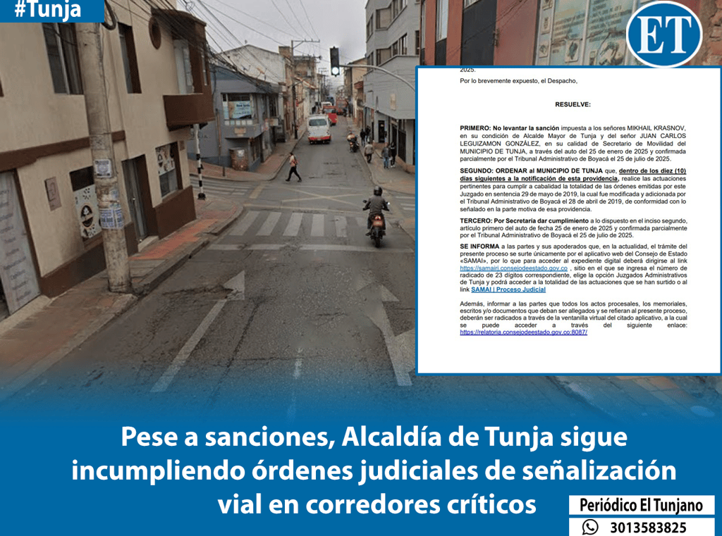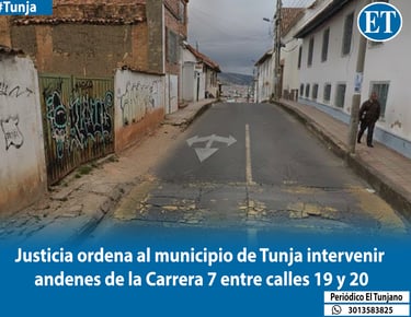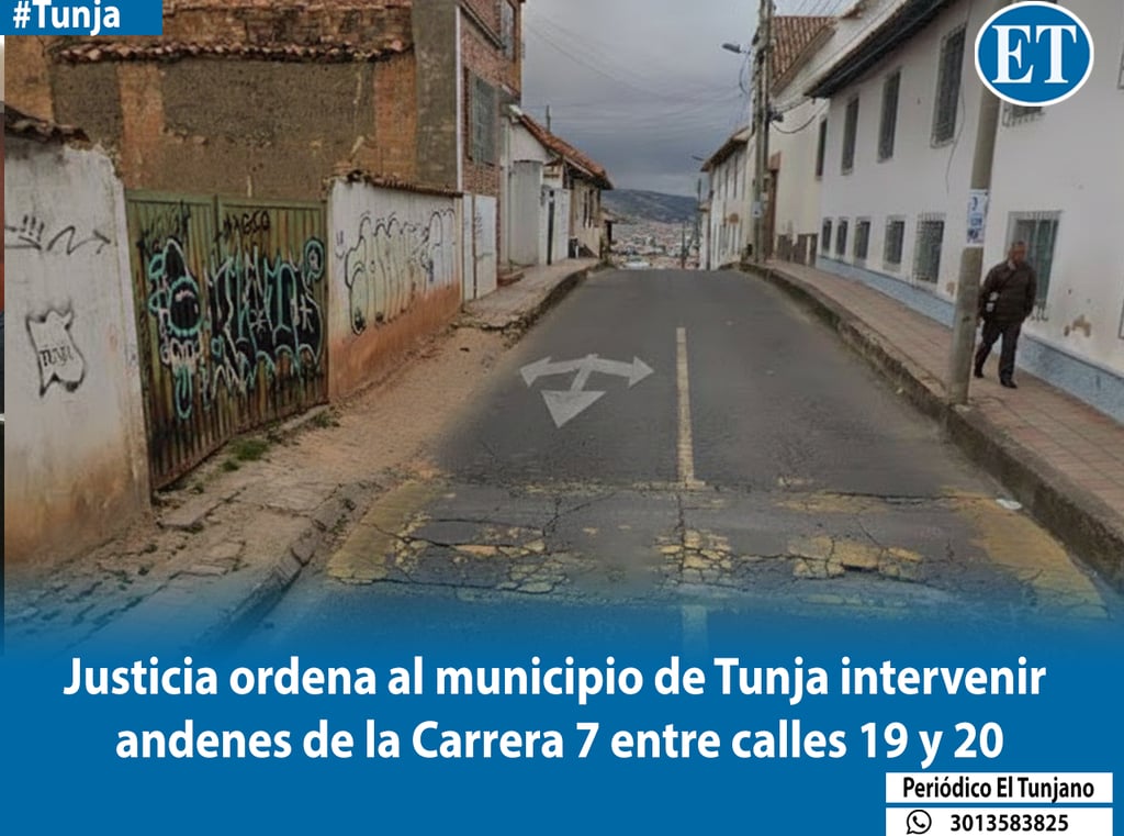 El Tribunal Administrativo de Boyacá, a través de su Sala Dual de Decisión No. 6, ratificó la orden judicial que obliga al municipio de Tunja a intervenir integralmente los andenes de la Carrera 7, en el tramo comprendido entre las calles 19 y 20. La decisión confirma el fallo de primera instancia que protegió los derechos al goce del espacio público y a la seguridad de los peatones.