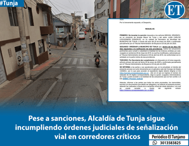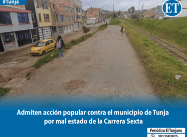 El Juzgado Segundo Administrativo Oral del Circuito de Tunja admitió una demanda de protección de los derechos e intereses colectivos instaurada por el ciudadano Yesid Figueroa García en contra de la administración municipal. El recurso judicial busca que se realicen intervenciones estructurales y estudios técnicos en la Carrera 6, en el tramo comprendido entre la calle 6 y la calle 1A sur, sector que limita con la vía férrea.