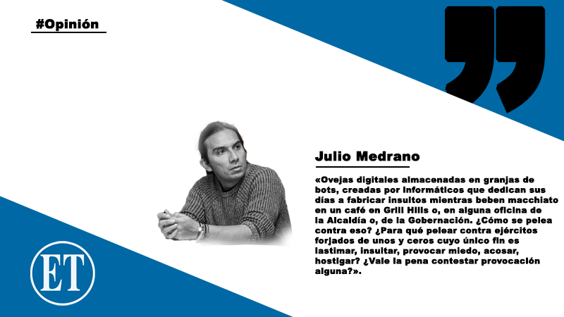 Ovejas digitales almacenadas en granjas de bots, creadas por informáticos que dedican sus días a fabricar insultos mientras beben macchiato en un café en Grill Hills o, en alguna oficina de la Alcaldía o, de la Gobernación.