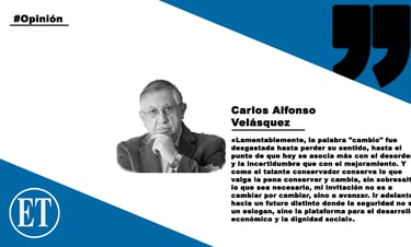 Lamentablemente, la palabra "cambio" fue desgastada hasta perder su sentido, hasta el punto de que hoy se asocia más con el desorden y la incertidumbre que con el mejoramiento. Y como el talante conservador conserva lo que valga la pena conservar y cambia, sin sobresaltos, lo que sea necesario, mi invitación no es a cambiar por cambiar, sino a avanzar. Ir adelante hacia un futuro distinto donde la seguridad no sea un eslogan, sino la plataforma para el desarrollo económico y la dignidad social. Sin seguridad jurídica, ciudadana y pública, no hay inversión nacional ni extranjera; y sin inversión, la dignidad es solo una promesa vacía.