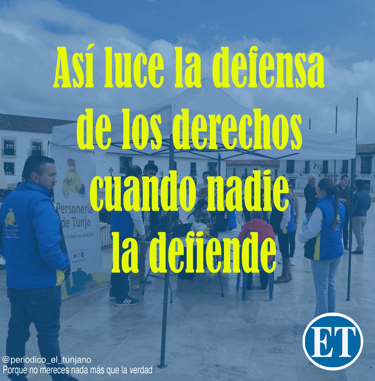 En Tunja, la defensa de los derechos terminó metida en una carpa blanca, levantada a las carreras en plena Plaza de Bolívar, atendiendo a la intemperie como si fuera un servicio menor. Duró apenas unas horas. Ese 13 de noviembre no solo fue la primera jornada de atención improvisada de la Personería sin sede fija. También fue la última. Desde entonces ningún ciudadano ha podido ser atendido de forma presencial. La oficina que debería recibir quejas, tramitar procesos disciplinarios y orientar a quien llega desesperado buscando defensa y cumplimiento de derechos, quedó reducida a una conexión virtual que excluye justo a quienes más necesitan ser escuchados, los ciudadanos.